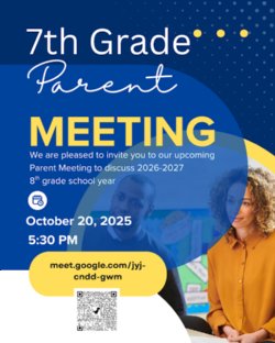 If you currently have a student in 7th grade, please make plans to attend this online parent meeting to discuss the 2026-2027 8th-grade school year!