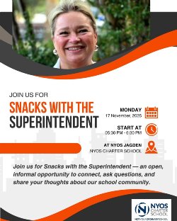 Join us for Snacks with the Superintendent - an open, informal opportunity to connect, ask questions, and share your thoughts about our school community.