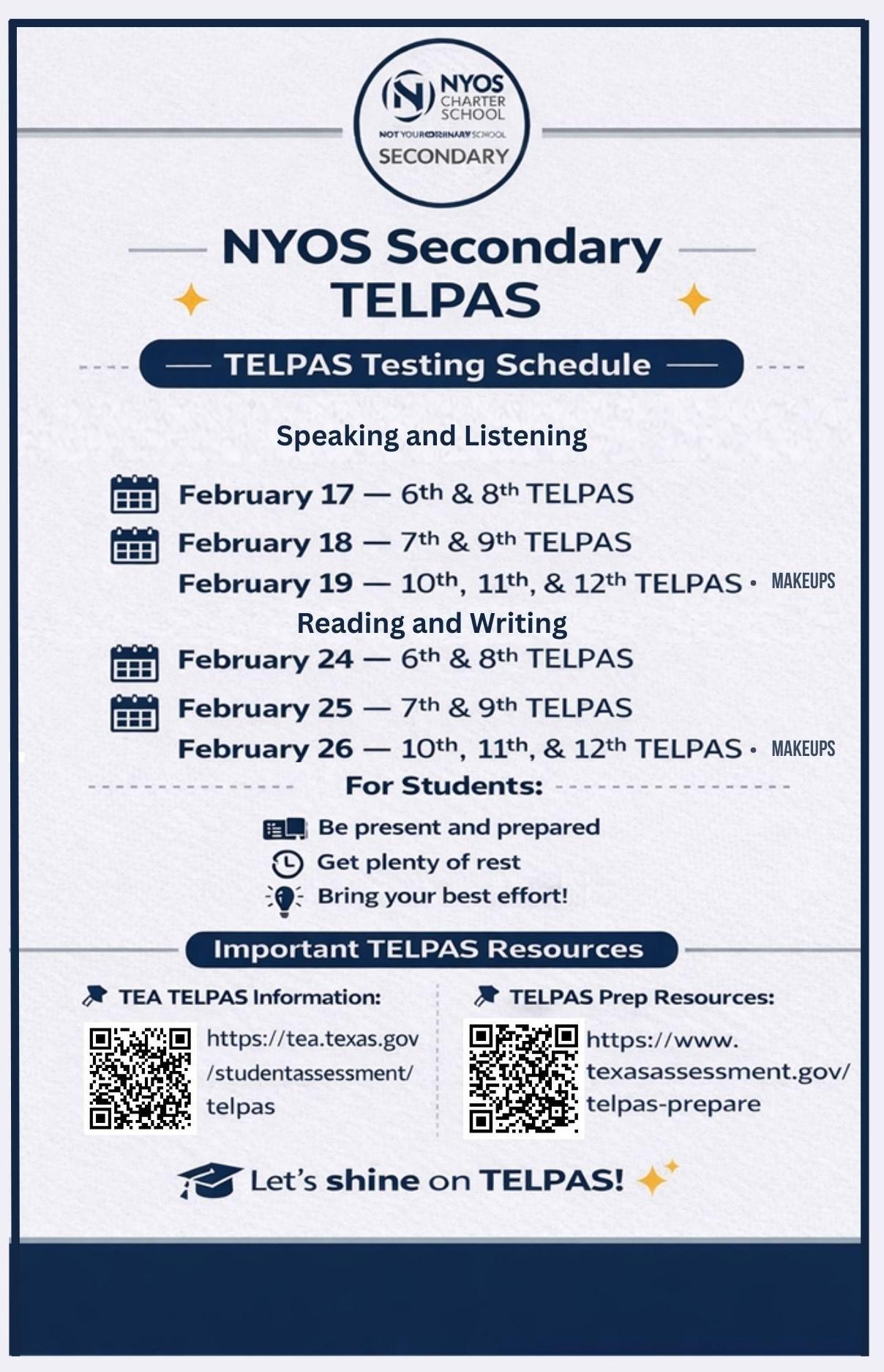 TELPAS Test Remember to continue doing your best, stay confident, and take your time. Every effort counts.Believe in yourself, stay focused, and show how much you have learned this year. Published February 19, 2026 Print
