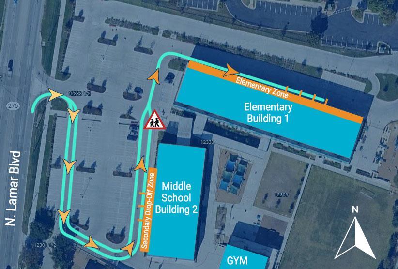 • If you have a Middle School student drop them off in the Secondary Drop-Off Zone. NOTE: This is a quick drop-off area! Please be efficient.